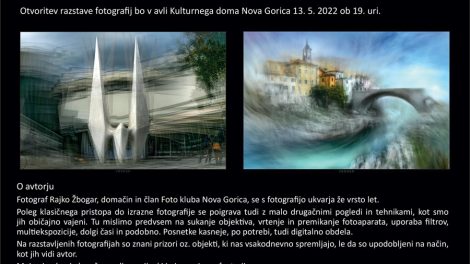 Vabljeni k sodelovanju na digitalni krožni razstavi EKOLOŠKA RESNICA 2022, v soorganizaciji Photoclub 202 iz Srbije, FK Nova Gorica in Akademije za...