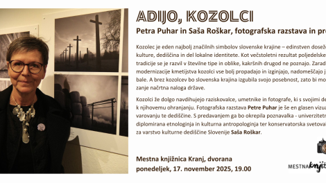 z naslovom “Adijo kozolci” v dvorano Mestne knjižnice Kranj, ki bo