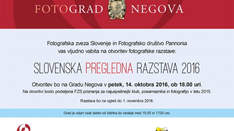 Fotografska zveza Slovenije in Fotografsko društvo Pannonia vas vljudno vabita na otvoritev razstave SLOVENSKA PREGLEDNA RAZSTAVA 2016.