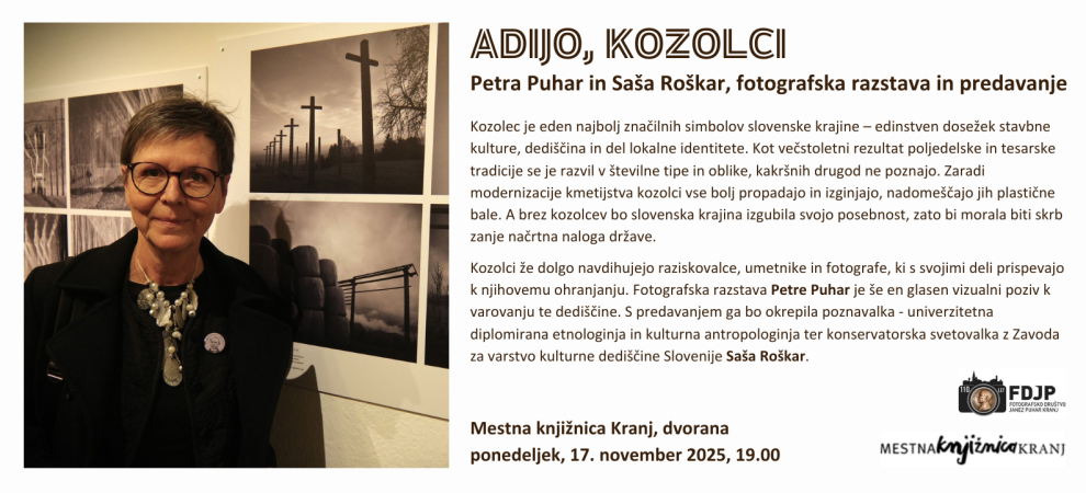 z naslovom “Adijo kozolci” v dvorano Mestne knjižnice Kranj, ki bo