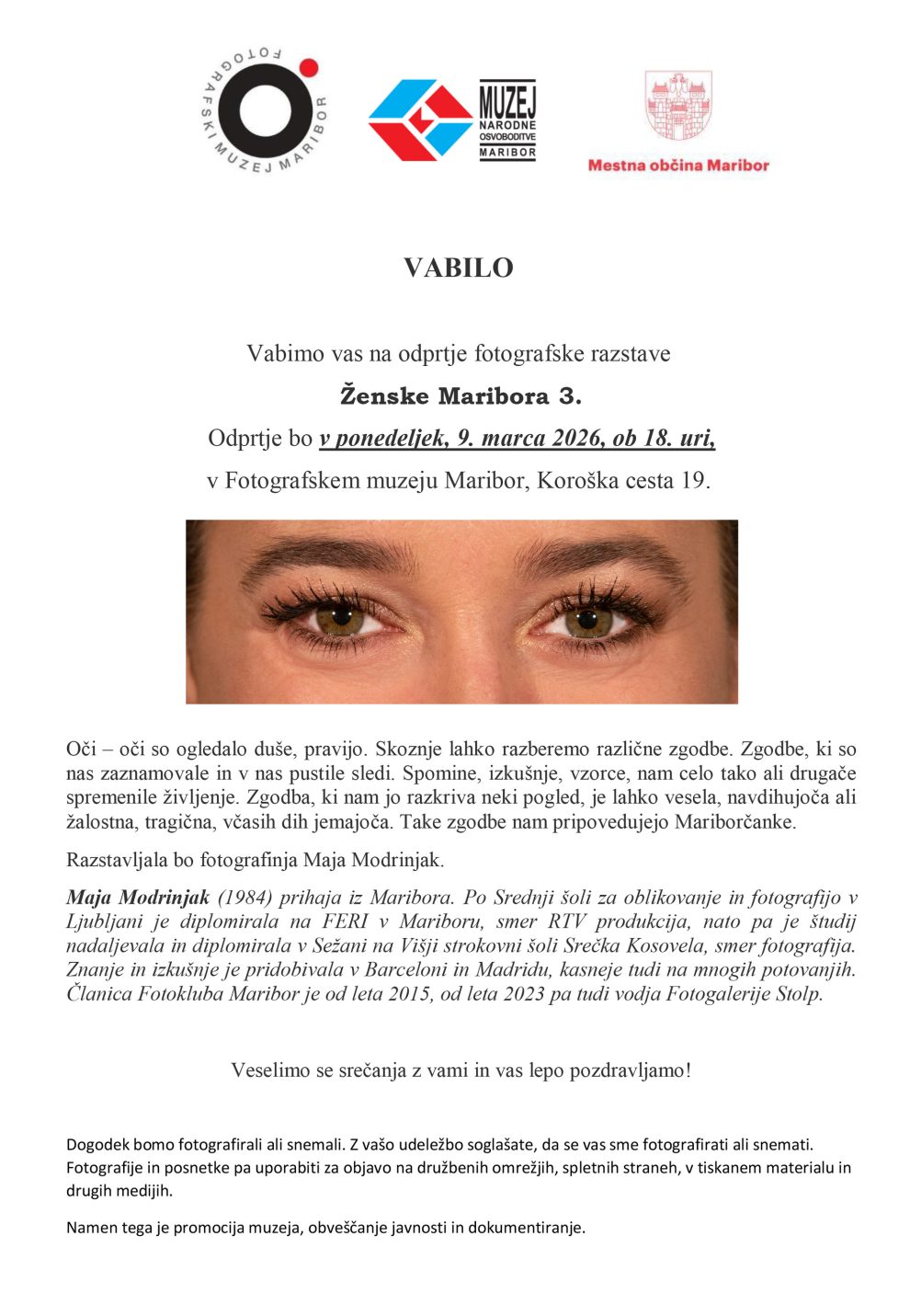 Ženske Maribora 3 6. March 2026 Ostale objave Dogodki108 GalerijaFzs4 Natečaji259 Neuvrščeni1 Objava3 Obvestila207 Obvestila – poteklo1 Obvestila FZS161 Predavanja11 Razstava831 Zapisniki39 Aktualno Razstava Razstava fotografij članic FK Žarek Razstava Ženske Maribora 3 Razstava članice FDJP Kranj: Pogled skozi žensko oko Razstava 1. klubska fotografska razstava Fotokluba Murska Sobota: SIVINE Razstava Aleš Lemut: ŠTALA – oder brez filtrov